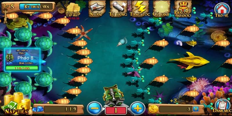 • Bước 3: Sử dụng chuột (hoặc chạm tay với thiết bị di động) để điều hướng và bắn đạn. Nên ưu tiên các loài cá bơi chậm, bơi theo đàn để tăng tỷ lệ trúng. Với boss hoặc cá đặc biệt, nên dùng tính năng “khóa mục tiêu” để tập trung hỏa lực.