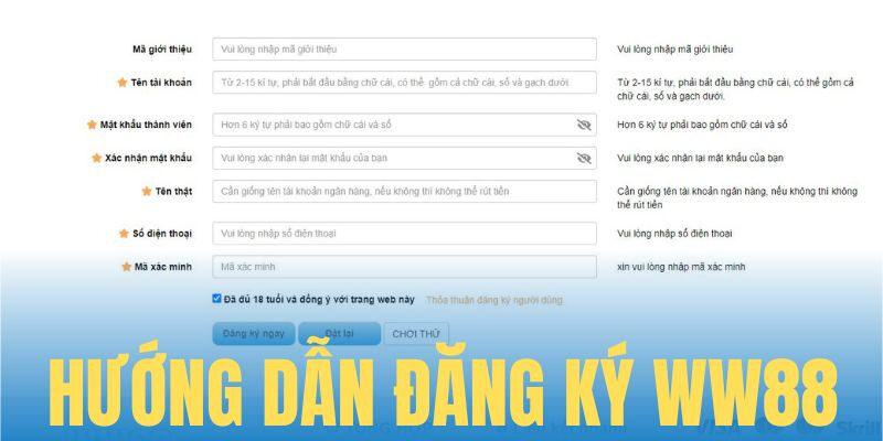 Biểu mẫu đăng ký W88 khá ngắn gọn, yêu cầu các thông tin cơ bản sau: